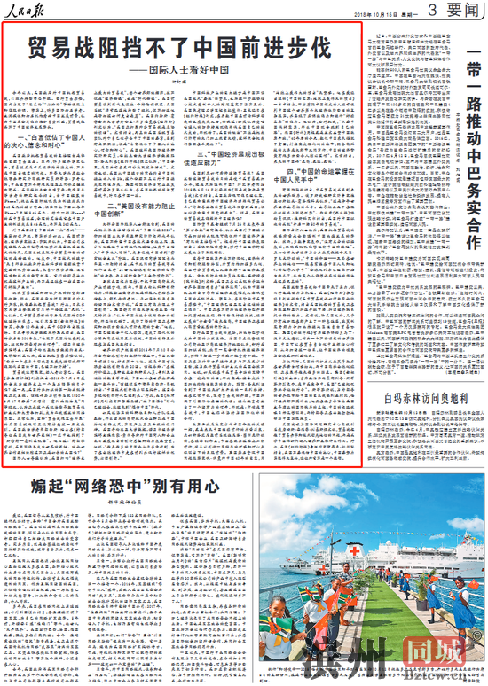 人民日报钟轩理文章:贸易战阻挡不了中国前进步伐