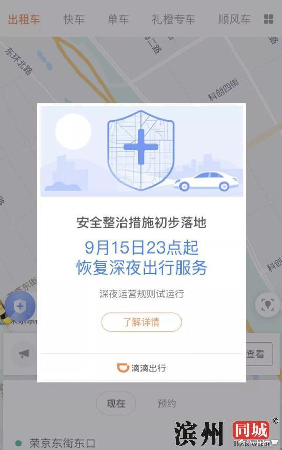 根据公告,从9月15日起,将按原计划恢复深夜出行服务,同时将试行夜间运营规则。试运行期间,快车(含优步、优享)及专车司机在深夜期间,也就是23:00-5:00,需要满足注册时间超过半年、安全服务超过1000单等条件才能接单。