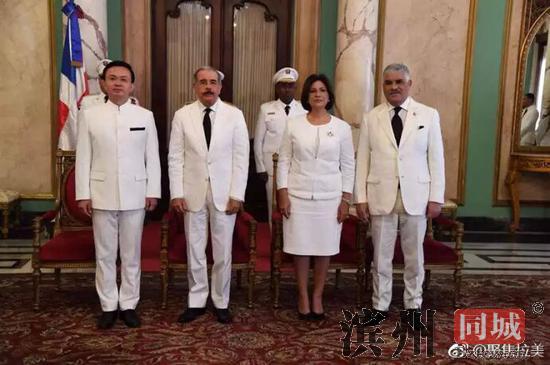 [环球网综合报道]据外交部拉丁美洲和加勒比司官方微博@聚焦拉美消息,8月24日,首任中国驻多米尼加大使张润向多米尼加总统梅迪纳递交国书,双方进行亲切友好交谈。多副总统塞德诺、外交部长巴尔加斯等在座。